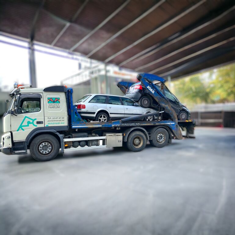 I tillegg driver vi Vrakbilmottaket på Narumshagen sammen med Metallco Hallingdal, hvor vi forenkler prosessen med å vrake kjøretøy. Hos oss kan du levere din bil uten å være registrert eier, og likevel motta vrakpant på kr. 3.000,-, utbetalt av Skatteetaten etter levering. Vi forstår at ikke alle biler er kjørbare ved levering, og tilbyr derfor en hentetjeneste med kranbil for å gjøre prosessen så smidig som mulig for deg. Prisen for denne tjenesten tilpasses basert på ditt spesifikke behov og lokasjon.
